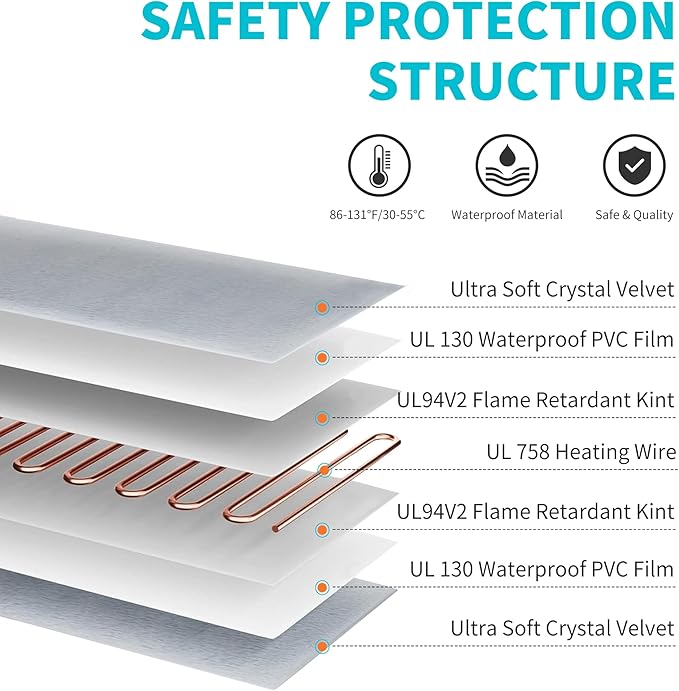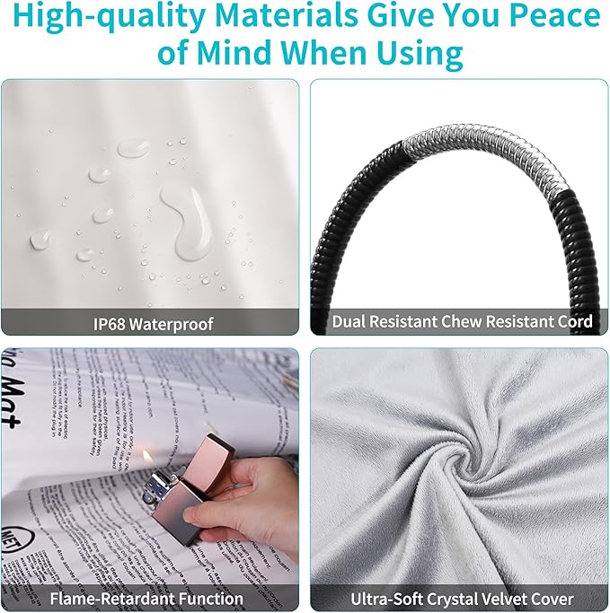 - Safety and Secure Structure: This heating pad for cats is made of UL-listed heating wire to protect that pet from burns. Premium PVC, waterproof and flame retardant, assures peace of mind. A built-in smart temperature sensor prevents overheating for pet safety. Avoid pets resting directly on the heating pad without a plush cover.