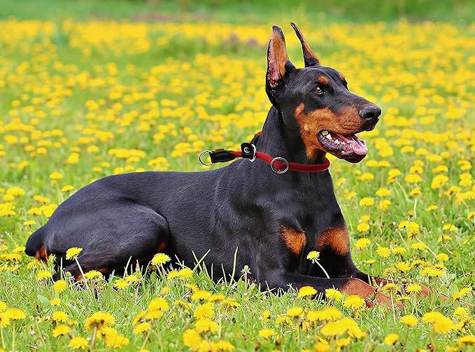 Braided Round Martingale Dog Collar, Training Collar with Slidable Stop Ring and Adjustable Stopper - Ideal for Extra Large Dogs (XL(1/2") - 24" Long, Red)