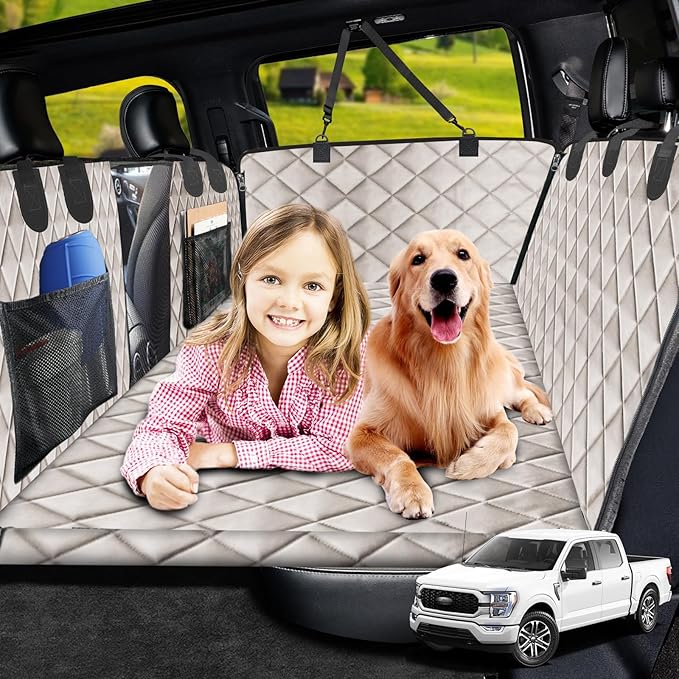 - Ultimate Comfort: The padded hard bottom is built in 6-layer protection to make your dogs feel much more comfortable while traveling in the truck. The hard plate is covered with a layer of 35D sponge to enhance comfort, and held in place by premium non-woven fabric, so it's easy to remove for easy cleaning of the dog truck seat cover