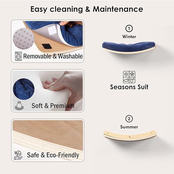 - 【Featuring Removable Soft Cushions】Our cat wall shelf is equipped with removable seat cushions that are soft and comfortable, providing maximum comfort for your cat while also protecting your furniture from natural scratches.
