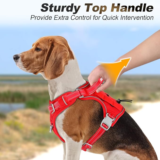 - **Advanced No-Pull Design**: No more worrying about tugging during walks.Equipped with a front-clip design,it effectively reduces pulling,making your dog-walking experience more enjoyable and relaxed.The added top handle offers immediate control,perfect for quick corrections