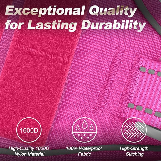 - **Advanced No-Pull Design**: No more worrying about tugging during walks.Equipped with a front-clip design,it effectively reduces pulling,making your dog-walking experience more enjoyable and relaxed.The added top handle offers immediate control,perfect for quick corrections