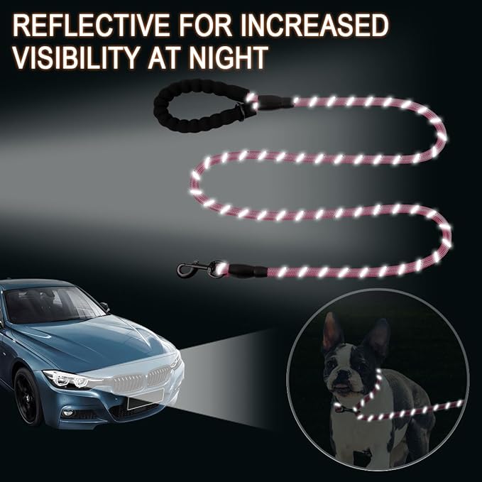 BARKBAY Dog Leashes for Large Dogs Heavy Duty Dog Leash 4/5/6 FT with Comfortable Padded Handle and Highly Reflective Threads for Medium Large Dogs Walking Training Running (6FT-1/2'',Pink)