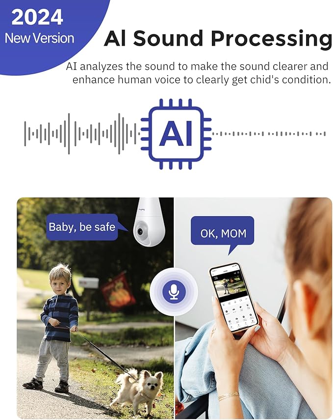 Hugolog 3K 5MP Light Bulb Security Cameras Wireless Outdoor-2.4GHz Cameras for Home Security Indoor with AI Sound Processing, Motion Detection,Color Night Vision,Auto Tracking,Siren Alarm