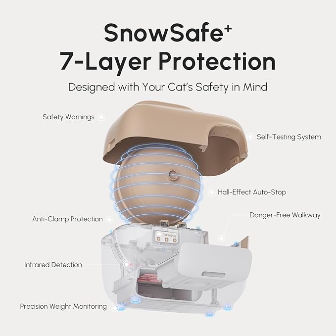- 7-Stage Safety & 24/7 Support: SnowSafe+ technology immediately pauses cleaning when your cat enters. Backed by around-the-clock customer service for complete peace of mind.