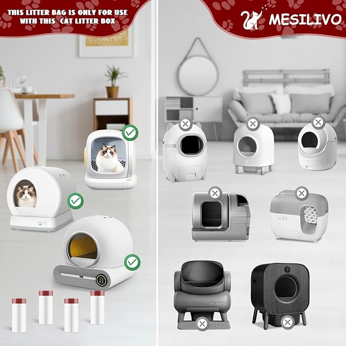 80 Count Self-Cleaning Litter Box Liners for MeoWant MW-SC01/MW-SC02, Extra-Thick Drawstring Trash Bags 17.7x19.68 in, Odor-Proof Cat Waste Disposal