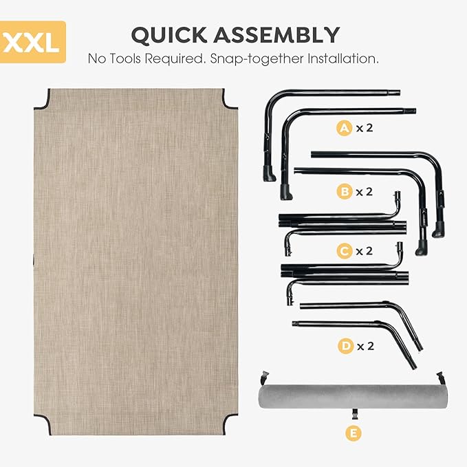 Veehoo Large Elevated Dog Bed, Outdoor Raised Dog Cot Hammock Bed with One-Sided Removable Headrest Bolster, Cooling Breathable Washable Teslin Mesh, Off Ground, Anti-Slip, XXL, CWC2204BCP