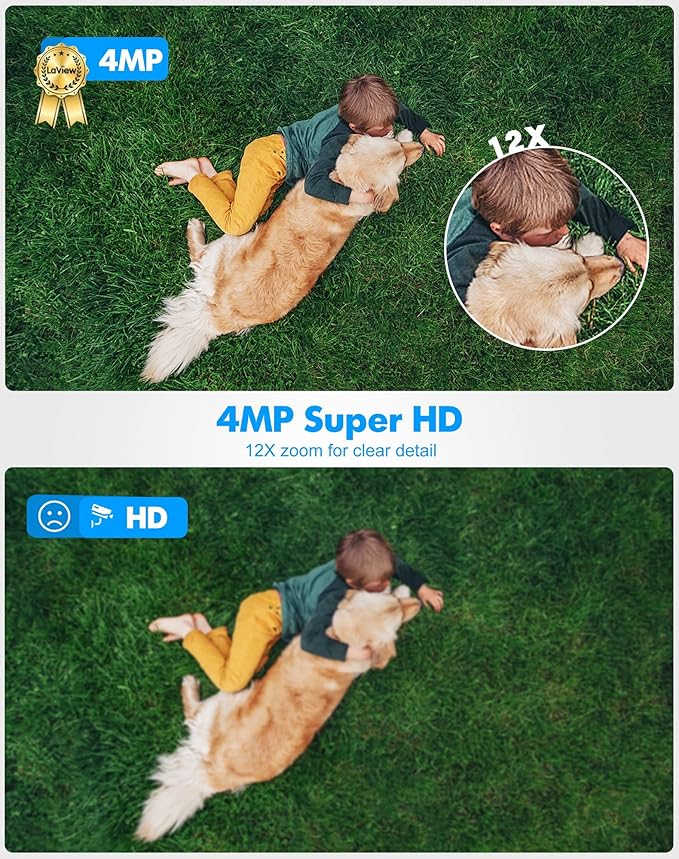 - Advanced Night Vision: This 4MP HD outdoor security camera with 12x digital zoom; support color/smart/infrared night vision up to 30 feet; ensures clear monitoring even in the presence of faint starlight or complete darknes