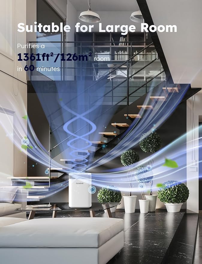 Nuwave Portable Air Purifier for Large Room up to 1361 Sq Ft with PM 2.5 Display Air Quality Sensor, H13 True HEPA Air Filter Remove 99.97% of Pets Hair Odor Dust Smoke with Double-sided Air Intake