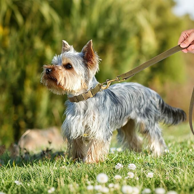 Didog Soft PU Leather Dog Collar, Stylish Quick Released Dog Collars for Small Dogs, Easy Clean Adjustable Pet Collar for Daily Walking, Dark Green, S Fit 10-16" Neck