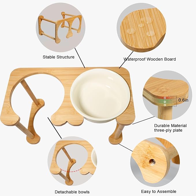 - Stable & Sturdy Construction: The weighted raised ceramic pet feeding bowls with non-slip stand,Multi-Layer natural and solid bamboo structure prevents sliding and being knocked over.