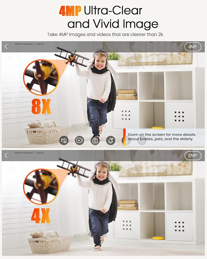 - Latest Upgraded 2.5K Resolution & 360° Coverage: With 4MP resolution and 355° pan & 115° tilt, You can remotely rotate Pet camera with phone app to watch riveting footage of your puppy snoozing, or you might solve the mystery of why there’s fur on the kitchen counter. cameras for home security.inside cameras for house.