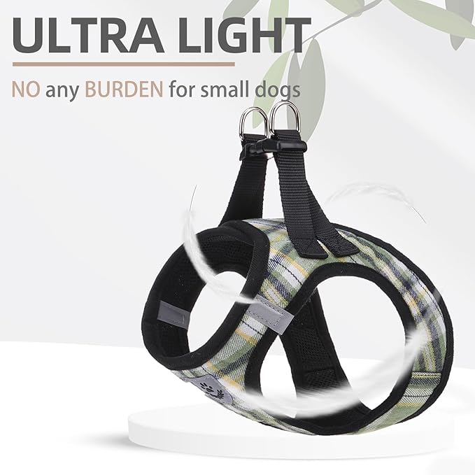 - [REFLECTIVE, PLAID PATTERN] - This Harness has two sides of reflective straps, and the middle logo also is reflective, so if you walk with your dog at night, then both of you will be safer! In addition, the classic plaid pattern is designed by our internal brand team, so it's very different from other normal harnesses. This plaid pattern looks both classic and stylish and is never out of date.