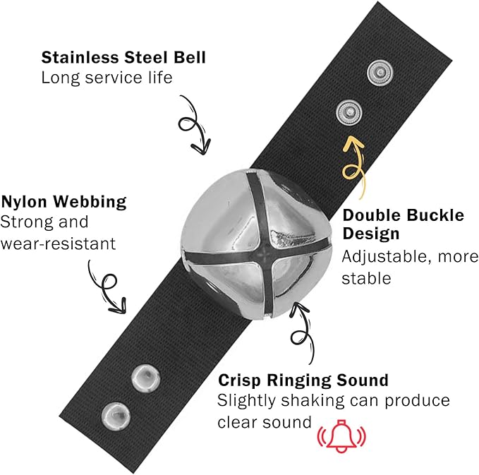 - DUAL SNAP NYLON LOOPS FOR EASY DONNING AND DOFFING: We use a heavy-duty nylon loop to attach the puppy bell to any kind of dog collar. Double snap buckles at both ends are very convenient to wear, and not easy to loosen. Soft fabric, comfortable for dogs to wear bell for a dog collar.