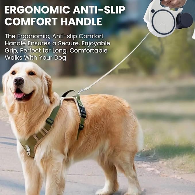 Best Dog Supplies Retractable Fancy Leash with Flashlight and Dispenser for Safe and Comfortable Walk with Your Pet - 16 ft White Dog Leash Suitable for All Pets