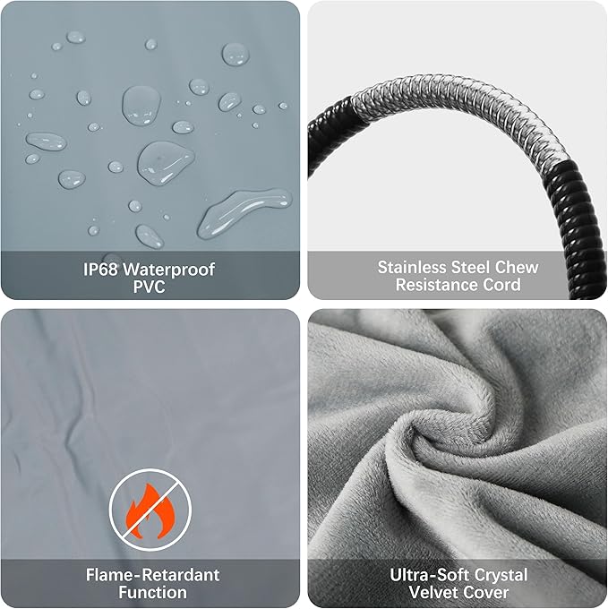 - Safety and Secure Structure: Featuring a 7-layer protective structure with UL-certified heating wire, the azuza heating pad prevents pets from getting burned. The soft PVC envelope has waterproof and flame-retardant functions. An intelligent temperature sensor is built-in to prevent overheating and protect your pets. Always use the pad with a plush cover for added safety