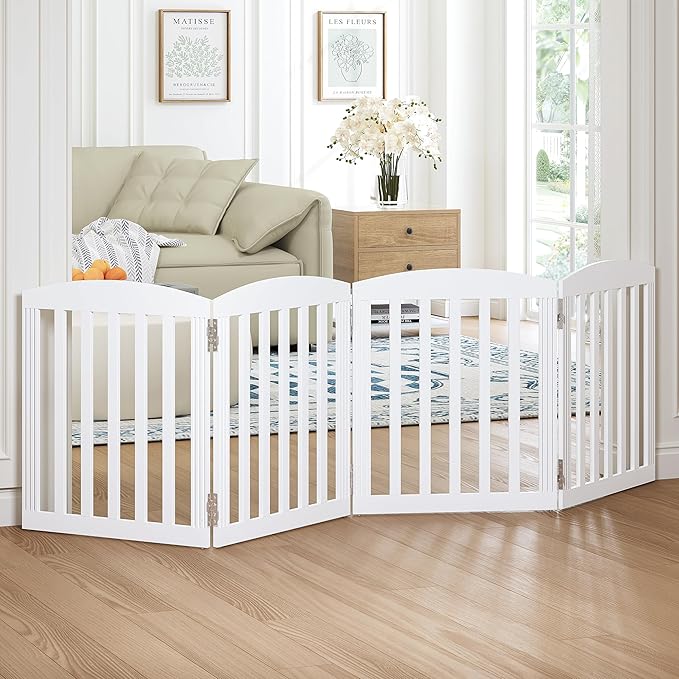 SPIRICH 96" Extra Wide 28" Tall Wooden Freestanding Foldable Dog Gate, Pet Gate Indoor, 4 Panels, White