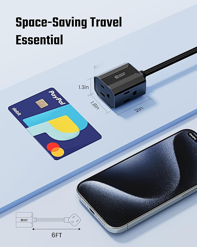 - 3-WAY OUTLETS: Transform a single outlet into three with this mini power strip, featuring 3 grounded outlets on 3 sides to prevent plug interference. Ideal for home,cruise, office, dorm, or hotel use. Available with 3ft, 6ft, 10ft options.