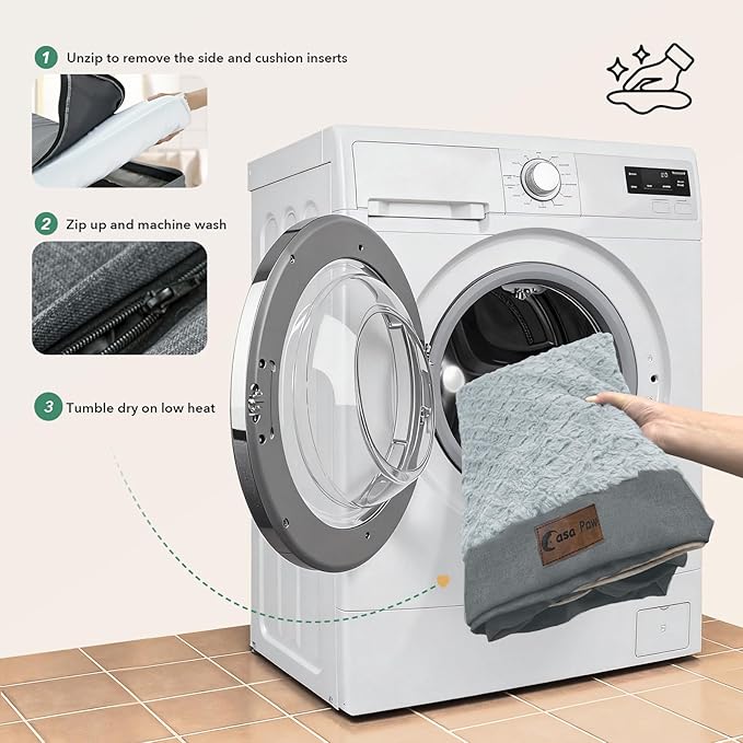 - WATERPROOF & EASY CARE: The middle waterproof layer between plush velvet surface and bottom fabric prevents urine penetration, keeping the memory foam dry and free from mold. The cover of the washable dog bed can be easily removed or combined through the tear-resistant zipper. Only the out cover supports machine washing and low-temperature drying, please take the foam and bolsters out and wash the cover individually.