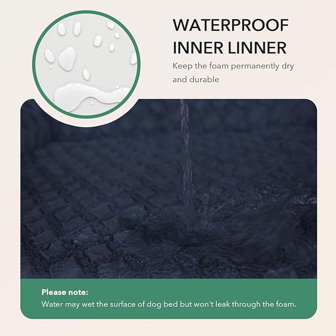 - WATERPROOF & EASY CARE: The middle waterproof layer between plush velvet surface and bottom fabric prevents urine penetration, keeping the memory foam dry and free from mold. The cover of the washable dog bed can be easily removed or combined through the tear-resistant zipper. Only the out cover supports machine washing and low-temperature drying, please take the foam and bolsters out and wash the cover individually.