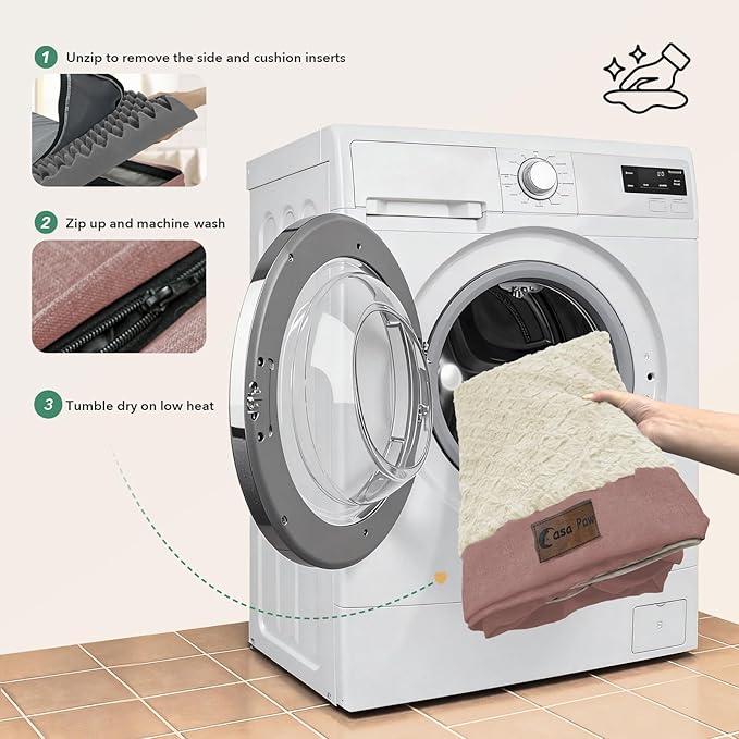 - WATERPROOF & EASY CARE: The middle waterproof layer between plush velvet surface and bottom fabric prevents urine penetration, keeping the memory foam dry and free from mold. The cover of the washable dog bed can be easily removed or combined through the tear-resistant zipper. Only the out cover supports machine washing and low-temperature drying, please take the foam and bolsters out and wash the cover individually.
