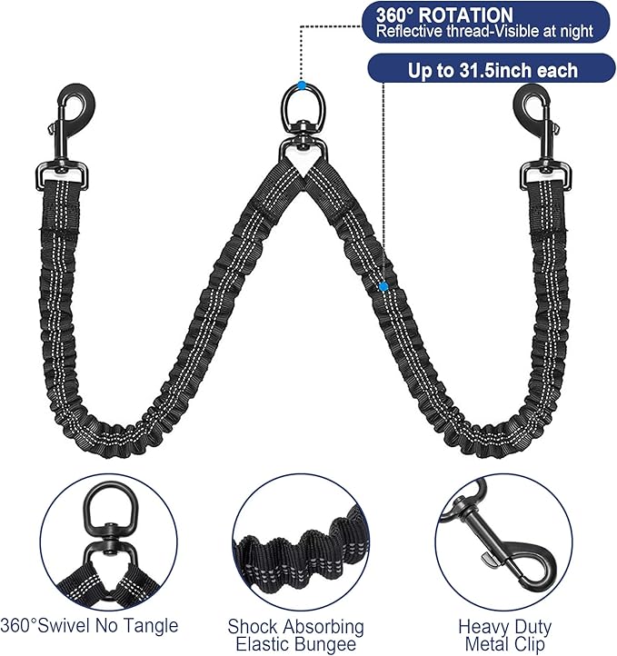 - 🐕Anti-Tangle Design🐕 U-shaped tape entrance is 360° anti-tangle,360° swivel buckle design prevents the leash from tangling and can be retrieved safely and quickly,Adjustable length: 17-33 inches, perfect for walking 2 dogs in daily life, save your time.