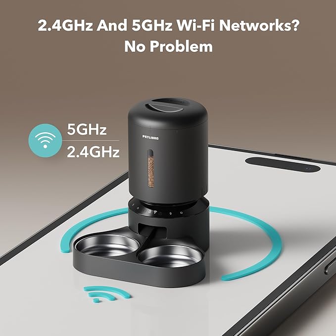 - CONVENIENT APP CONTROL: PETLIBRO automatic cat feeder for 2 cats is compatible with 5GHz and 2.4GHz WiFi to ensure a stable connection.APP is available for download via iOS/Android, which makes it easy to program your pet's diet plan and monitor it in real time wherever you are. Supports multiple users to set feeding time and view detailed feeding records.