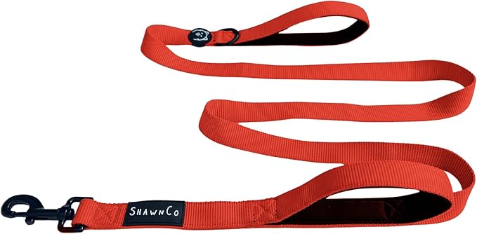 ShawnCo Dream Walk Dog Leash- Premium, Nylon Pet Leash with Soft Neoprene Handle for Small, Medium and Large Dogs (Mustang Red, M/L 6FT w/ 2 Handles)