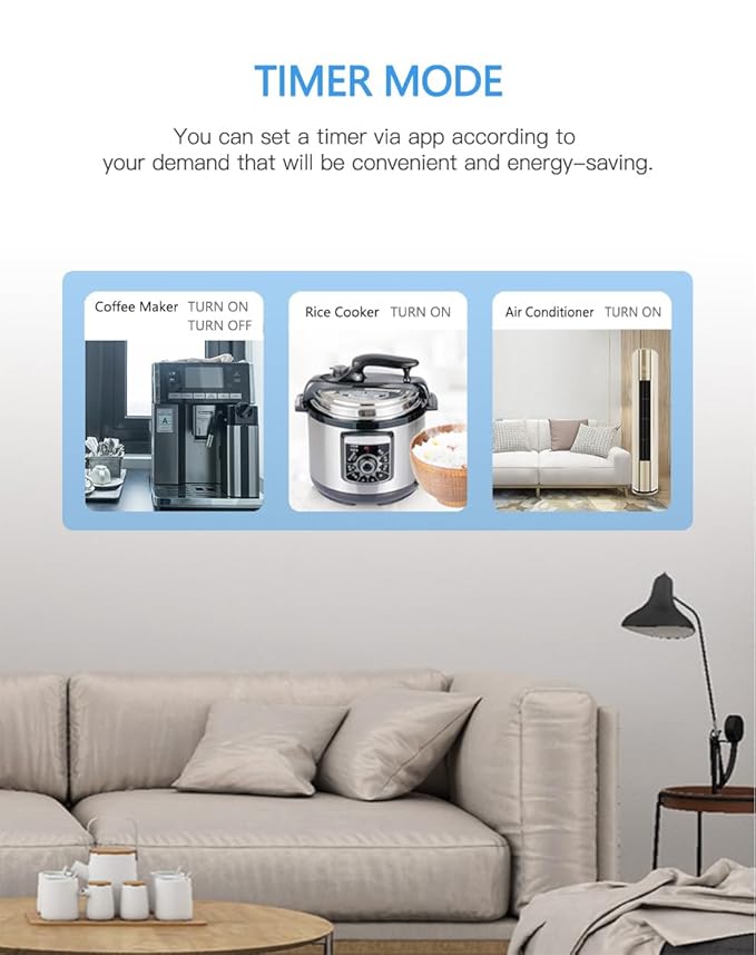 - Timing Function: Control your home appliances according to your schedule, more convenient than using traditional alarm clock to remind you of it.