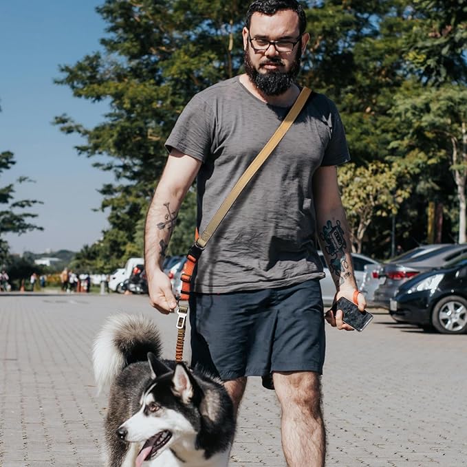 - 【Hands Free Dog Leash】Heavy duty leash material, allows for hands-free movement, providing a more comfortable and enjoyable experience for both you and your furry friend. The leash or belt aren't too heavy for you all, they're sturdy but light weight. Designed with the reflective strip for visibility at night. The bungee leash can be detached from the waist belt and used as a hand leash. It can also be used as a hand lead while still attached to the waist belt for extra security.