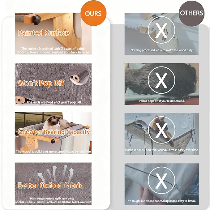 - 【Space-Saving & Entertaining】Tired of your cat taking over the sofa? Our window perch lets them sunbathe to their heart’s content without occupying floor space. It diverts cats from sofas, keyboards, and kitchens, while fulfilling their natural instincts: gazing at outdoor scenery, watching birds, napping in the sun on crisp afternoons, breathing fresh air, and observing floating leaves—adding endless joy to their daily life.