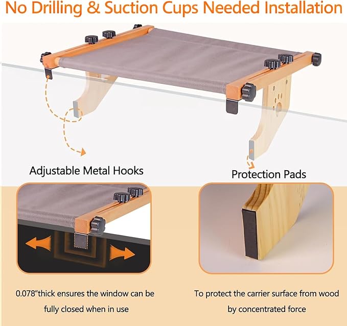 - 【Space-Saving & Entertaining】Tired of your cat taking over the sofa? Our window perch lets them sunbathe to their heart’s content without occupying floor space. It diverts cats from sofas, keyboards, and kitchens, while fulfilling their natural instincts: gazing at outdoor scenery, watching birds, napping in the sun on crisp afternoons, breathing fresh air, and observing floating leaves—adding endless joy to their daily life.