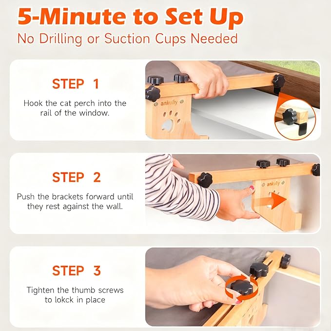 - 【Flexible & Renter-Friendly】Adjusts easily to fit different windowsill depths and can be moved between windows seamlessly without blocking blinds. No drilling or suction cups required—protects walls and glass from damage, while eliminating risks of falls or scares caused by suction cup detachment or Velcro failure. Perfect for apartments and renters.
