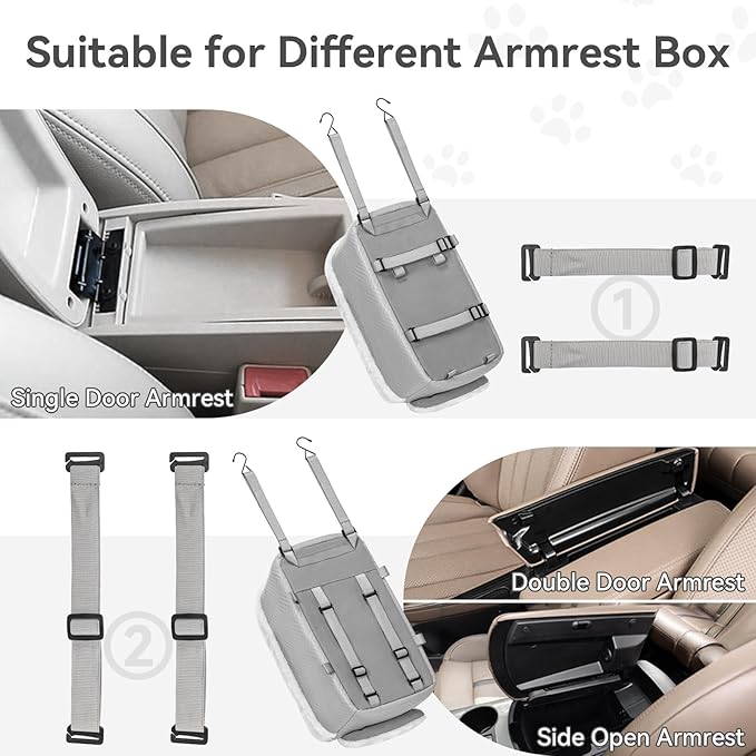 - [Enhanced Safety Features] Our center console dog car seat is engineered with your pet's safety in mind, featuring protective hooks on both sides to offer superior protection during sudden stops. The cat car seat is equipped with 2 adjustable straps at the bottom, ensuring a snug and secure fit around the armrest, reducing movement and risk of falling