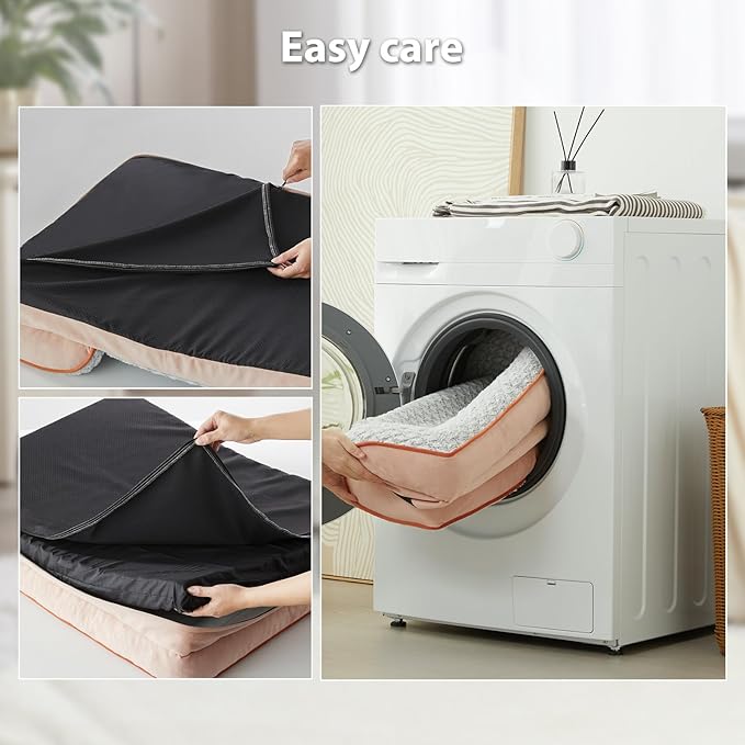 - 【Easy to Clean】The waterproof dog bed features a removable and washable cover, ensuring the pet bed effortless cleaning and care.The large dog beds with a 3-sided zipper, allowing for easy removal and reattachment. The washable dog bed with a waterproof lining of protection against accidents, keeping the washable dog bed fresh and clean.