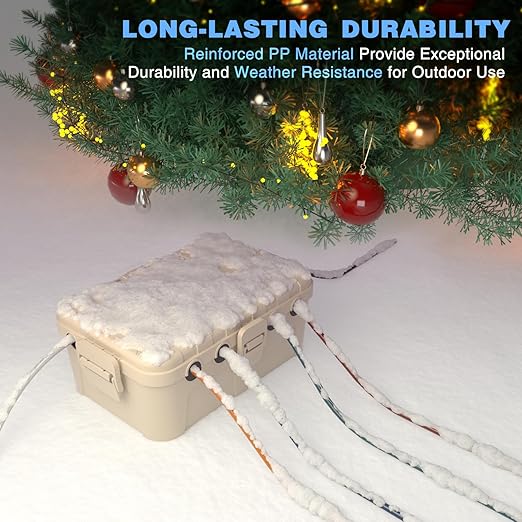 - Keep outdoor cord connection secure and protected. Large size (12.5 x 8.5 x 5 inch) and 6 cable entry ports, protect outdoor power strip, timer outlet plug, extension cord, large adapter. Great for keeping Christmas inflatable decor running while safeguarding its electrical safety.