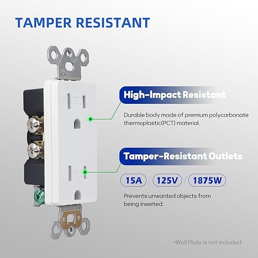 - TAMPER-RESISTANT: Tamper-resistant receptacles are designed to prevent the insertion of unwanted objects; This child safety feature ensures that only correctly angled plugs can be inserted into the receptacle