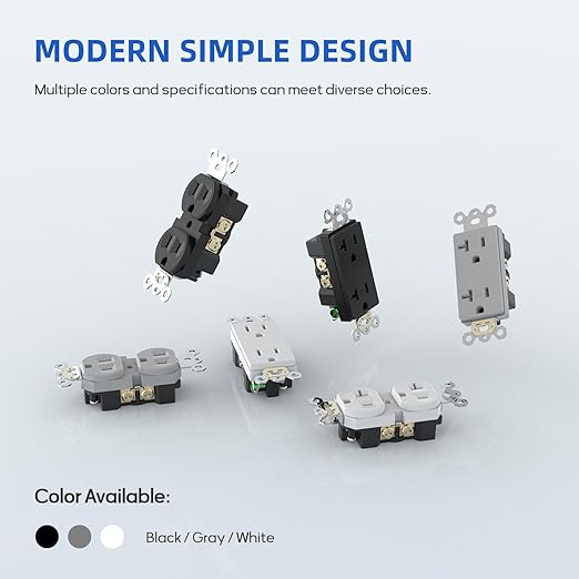 - MODERN STYLE: The glossy gray finish provides a sophisticated appeal; This receptacle outlet is suitable for residential environments such as kitchen, bedroom, living room, as well as commercial environments such as company, hotels and restaurants
