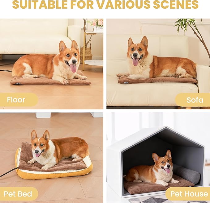 Heated Pet Pad for Dogs and Cats, Waterproof Heating Mat with Chew-Resistant Cord, Constant Warmth for Indoor & Covered Outdoor Use, Multiple Sizes and Colors (Brown, L: 26" × 20" × 1.3")
