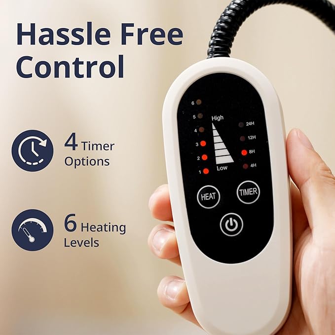 - AUTO SHUT OFF: Features auto shut off timer function, ability to set the time off from 4 time ranges, and conserve energy. Provides warmth to fur kids when you're not at home