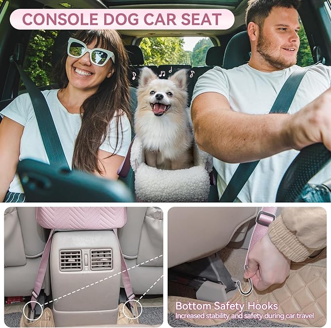 - [Drive with Less Distraction] Our small dog car seat comes with a larger pet harness hook, keeping your pet securely in place and reducing distractions while driving. The dog car seats for small dogs also feature comfortable shoulder straps for easy carrying and a convenient pocket for essentials.