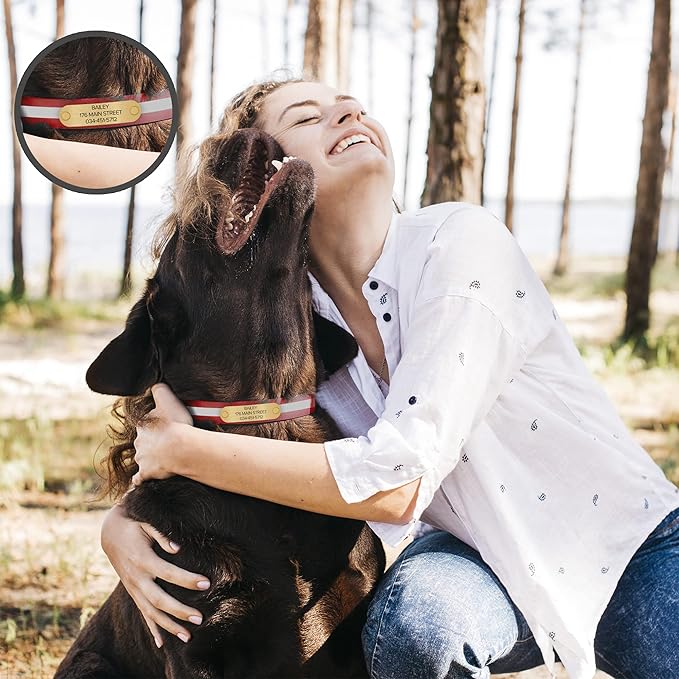 - SAFETY UNDER SUNDOWN - Walking your dog in the dark is dangerous. Fetch some safety for both you and your furry friend with the Black Reflective Dog Collar by Regal Dog Products! As cars pass, the highly reflective strip notifies drivers of your presence so they can safely steer clear. Keep your dog visible and out of harm's way wherever you may go day or night. With the customizable name plate, you can keep your furry friend safe and properly idenfied.