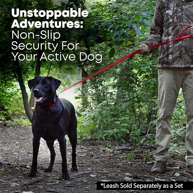 - DOGGONE DURABLE - Poorly made dog collars often break the first time your pooch lunges for a squirrel, but this thick dog collar is designed to endure it all! The D ring and doube buckle are solid metal (not pliable plastic like other collars). Strong Buckle D Ring supports pull of 600 lb. Innovative coated nylon material provides extra durability for even the most active dogs; stands up to all weather, terrains and is virtually indestructible.