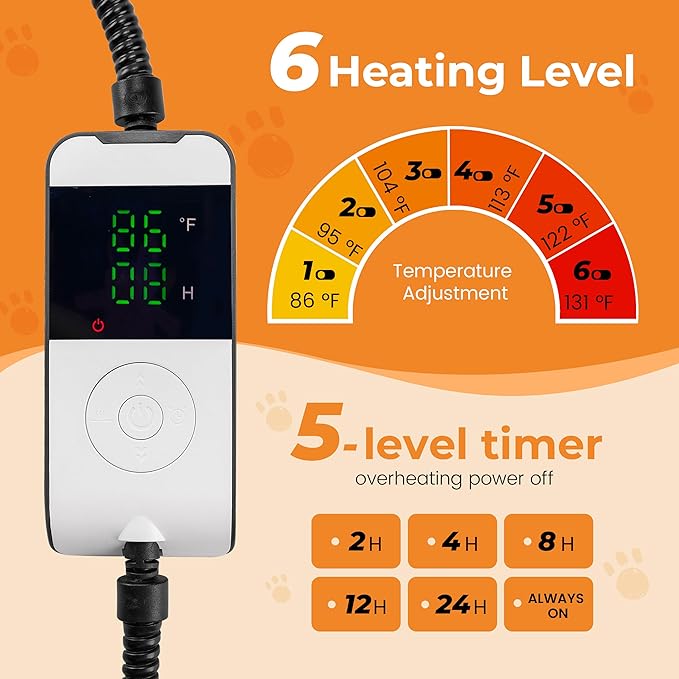 - 【Chew-Proof & UL Safe】 – 8-layer safety, dual fuse, 2 m steel-guard cord; sleep easy while the cat heating mat watches its own temperature.
