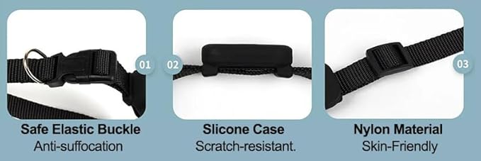 - "GPS Tracking: Monitor your pet's location and activity levels with the built-in GPS tracker and companion app. Easy to set up: A simple one-tap setup instantly connects the pet tracking collar tracker finder to the Find My app on your Apple devices to follow in real-time on your phone. Lightweight & Waterproof: It is made of high-quality nylon, silicone, and ABS. It is solid, resistant, and waterproof. Adjustable Size: It is easy to get a perfect fit around the pet's neck. It is suitable for small, medium, and large dogs and cats. Long Battery Life: It is powered by a CR2032 button battery that has a super long standby time over 12 months and can be easily replaced for long-term use."