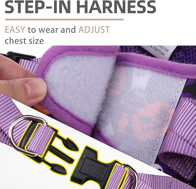 PUPTECK Dog Harness and Leash Set for Small Medium Dogs No Pull Step-in Soft Mesh Puppy Cat Vest Harnesses Reflective at Night, Halloween Purple, M