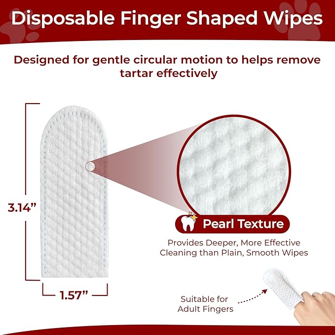 - Perfect Fit for All Pets: Our flexible pet dental finger wipes for dogs fit comfortably on any finger, making cleaning simple for small dogs, large breeds, puppies, kittens, and cats alike. Each dog finger toothbrush alternative gently cleans teeth and freshens breath, giving every pet the dental care they deserve.