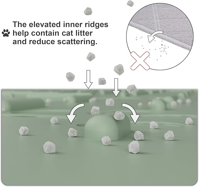 - Anti-Scatter Design: Thoughtful design with multiple raised inner ridges effectively traps litter and prevents it from scattering — helping to reduce tracking throughout your home. It protects your cat’s paws and floors, keeping both clean and tidy.