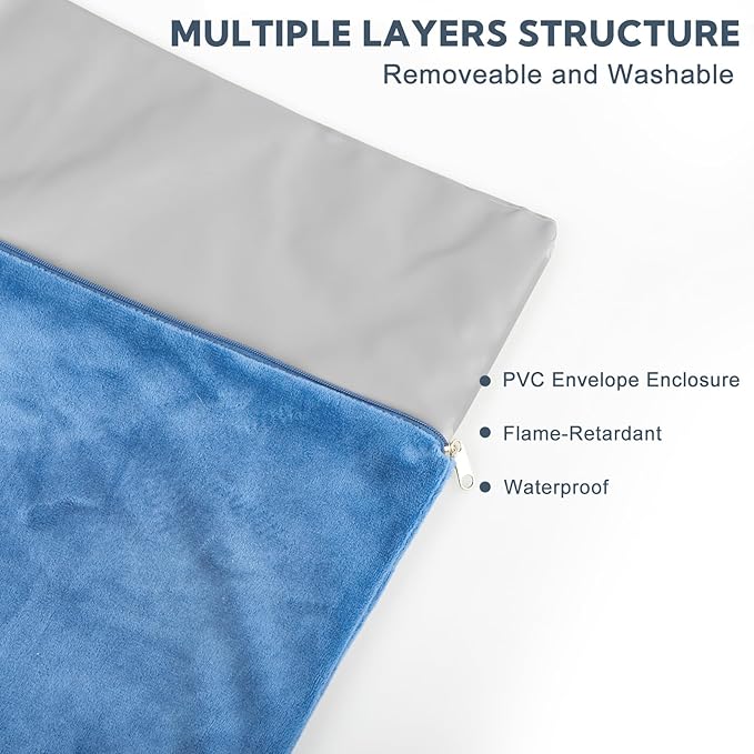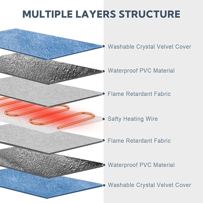 - SAFETY AND DEPENDABLE STRUCTURE: Multi-layer protective design and UL-certified heating wire to keep your pet safe from burns. Flame Retardant Fabric and waterproof PVC shell for added security. Built-in overheat sensor prevents the warming pad from getting too hot. And the heating pad for puppies also uses a 69 inches extra-long cord with a steel-encased chew guard to ensure your pet's safety always