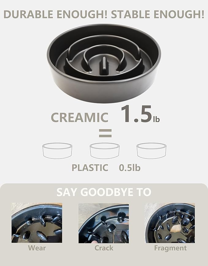 - 【Safe Durable Ceramic Material】Enjoy food safely and healthily—— Plastic dog bowls are often bitten by dogs, resulting in the plastic being ingested by dogs, which is harmful to dogs' health. Our ceramic slow feeder dog bowls are stronger and not easily chewed, that are your best choice.